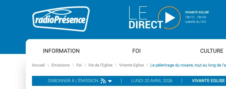 Long entretien sur Radio Présence, à Toulouse, le 20 avril 2026 pour parler de la vie du Pèlerinage du Rosaire entre deux éditions. A réécouter !